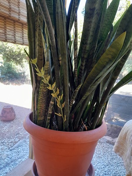 Der Bogenhanf steht schon lange im Wintergarten. Anspruchslos und grün das ganze Jahr über. Umso mehr begeisterte mich auch hier die erste Blüte, die ich über einen langen Zeitraum täglich beobachten durfte.