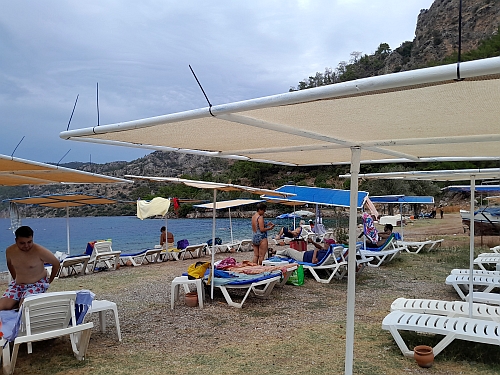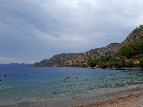 Bei unserem letzten Besuch zum Schwimmen in Delikyol war der Himmel grau, das Meer leicht abgekühlt (nur noch 30 Grad) und ich hatte das erste Mal Gänsehaut.