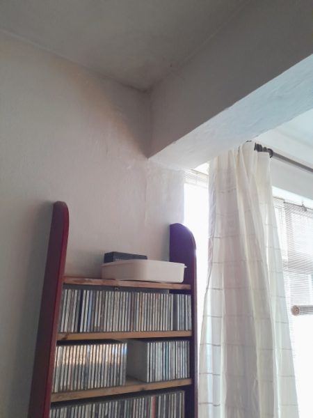 Da wir das Dach wegen der hohen Miete nicht mehr (auf unsere Kosten wohlgemerkt) gestrichen haben, bahnt sich das Wasser nun seinen Weg ins Haus.