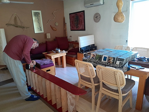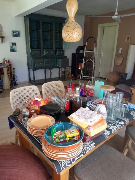 Wir gewöhnen uns an die Unordnung. Ich merke, daß jedes Teil das wir weitergeben, Luft verschafft. Wir haben natürlich nach dieser langen Zeit von allem viel zu viel. Nun ist die Chance das zu ändern und Raum zu schaffen.