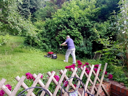 Regen und Sonne heißt hier – Rasen mähen. Doch gelernt ist gelernt und Othmar hatte schnell die Wiese wieder unter Kontrolle
