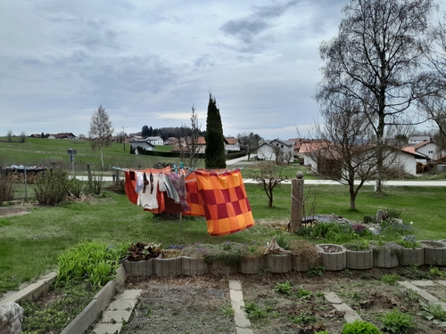 Beim nächsten schönen Sonnentag starten wir mit der Anbringung der Mückennetze an den Fenstern und der Eingangstüre. Mücken gibt es wohl wenig hier, aber die dicken fetten Fliegen nutzen jede Ritze um ins Haus zu kommen. Damit ist jetzt Schluß. Noch bin ich ziemlich müde und ausgelaugt, doch vom Sofa aus sehe ich täglich mehr Schmutz und Staub. Dann kam der Tag, an dem ich mich aufgerafft und drei Tage Hausputz gemacht habe. Othmar hat mir die Fenster geputzt und als Team war es wirklich hinzukriegen. Klar kam dann nochmal ein Schneeregen, doch wir haben ja Rolläden, die die sauberen Fenster schützen. Auf Nachtfrost folgt wieder ein Sonnentag mit 19,8 Grad, auch das ist eine neue Erfahrung für uns.