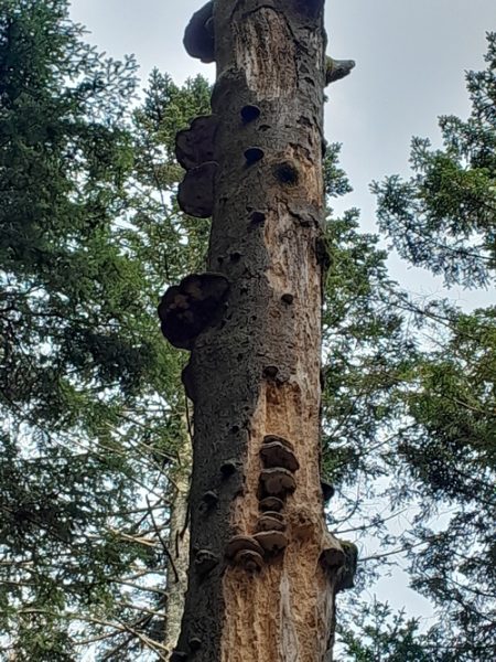 dieser Baum ist alt und schon länger tot, doch er wird für die Tiere des Waldes erhalten