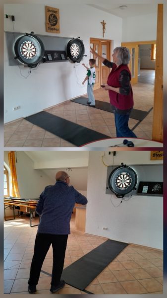 Schnuppertag zum Dart spielen vom Sportverein – nur ein paar Schritte von uns entfernt. Klar sind wir dabei und hatten soviel Spaß, dass wir uns angemeldet haben und das jetzt jede Woche mitmachen wollen. Allerdings machen sich die alten Knochen heftig bemerkbar und unser Wurfarm musste erst wieder mit viel Salbe hergestellt werden.